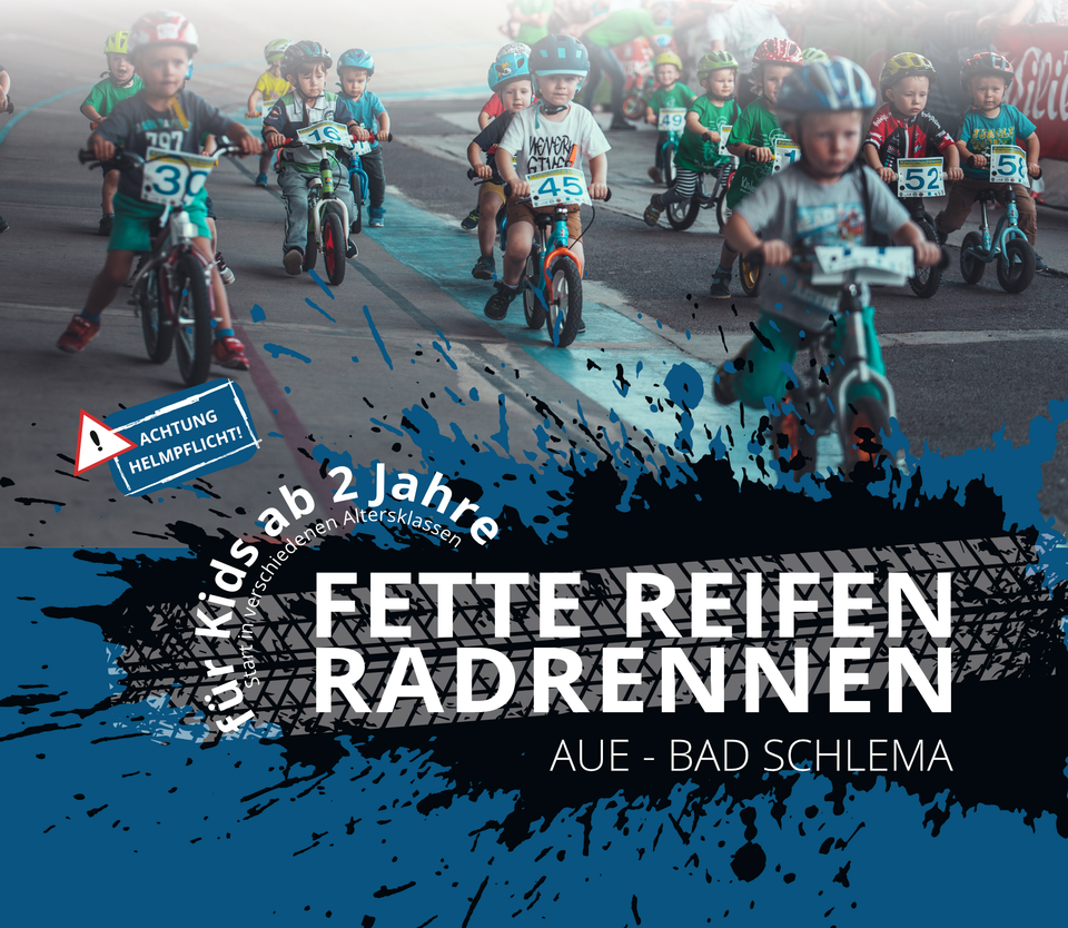 Am Samstag, 05. August 2023 geht unser Fette Reifen Kinderradrennen in Bad Schlema in die zweite Runde. Alle Kinder zwischen 2 und 9 Jahren, die gern auf zwei Rädern unterwegs sind, können bei dem coolsten Kinderradrennen der Region an den Start gehen. Geplant ist ein flacher Radparcours auf dem Parkplatz der Marktpassage, Bad Schlema.