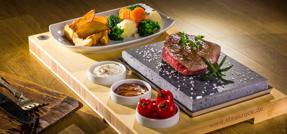 Auf Vorbestellung ab 6 Personen lassen wir Sie Ihr Steak auf einem 400°C heißen Lavastein SELBER GRILLEN!