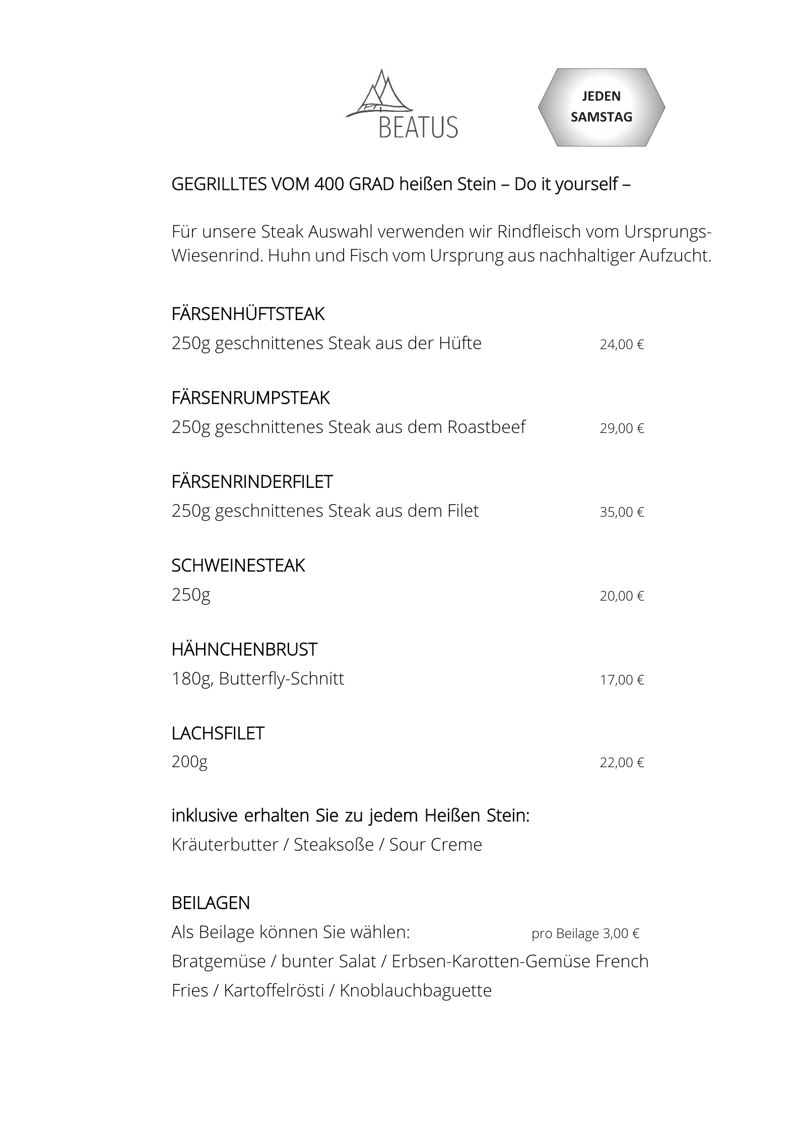Steakfreunde aufgepasst! Ab sofort wieder jeden Samstag!
